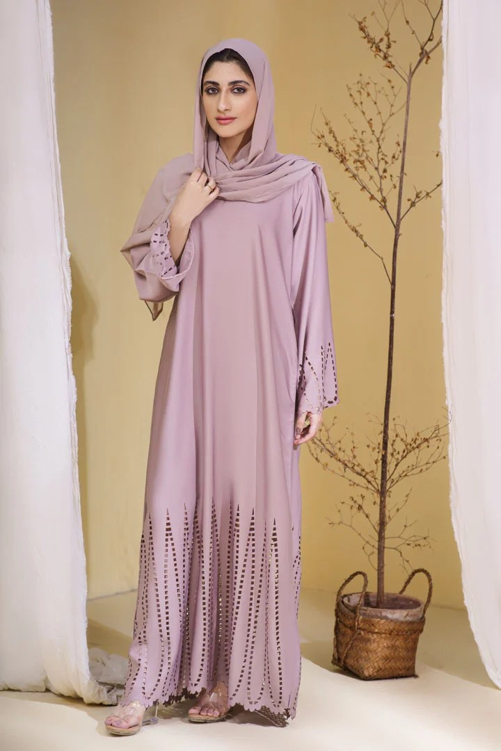 Bismal Pink Abaya With beautiful hijab And Embroidery