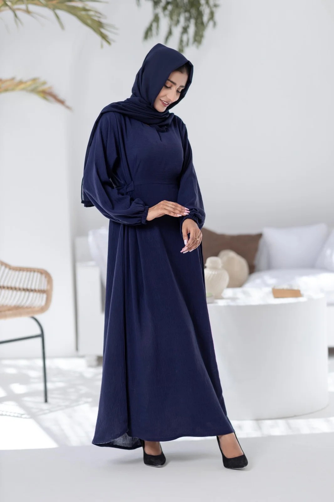 Introducing the Sara Abaya an epitome of modest sophistication crafted from premium CEY fabric. This elegant abaya features delicate loops with a coordinating belt, making it perfect for casual wear. The fabric ensures a comfortable and breathable fit, while the included hijab completes the look with a seamless style. Elevate your everyday elegance with the Navy Grace Abaya, designed for the modern, modest woman who values both fashion and comfort.